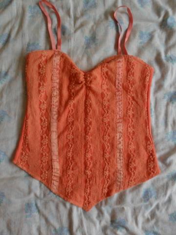 oranžinė bliuska-korseto tipo, galima vilktis po kiauraraščiu megztuku, nešioti viena.
