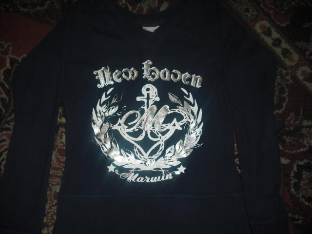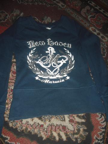 Mėlynos spalvos bliuskutė, panaši į sportini stilių