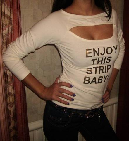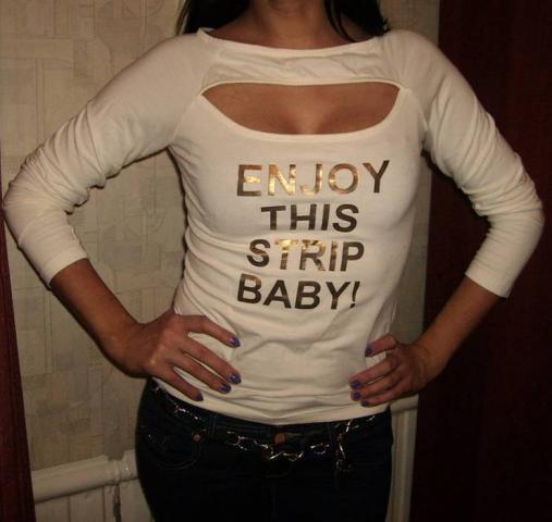 Priekis seksualiai atviras, priekis ir nugara dekoruotas aukso spalvos užrašais. Pirkta Vokietijoje
