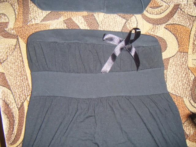 bliuskute su kaspinuku,virsus temptas su gumele,kad graziai laikytusi,be rankoveliu