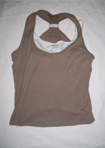 Bliuskutė iš dviejų dalių (jos susiūtos) po apačia yra balta bliuskutė,galima pasidaryti,kad jos ir nesimatytų. Gale surišta.
