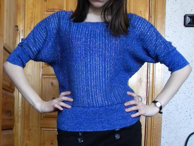blizgi, mėlyna, plačios rankovės.