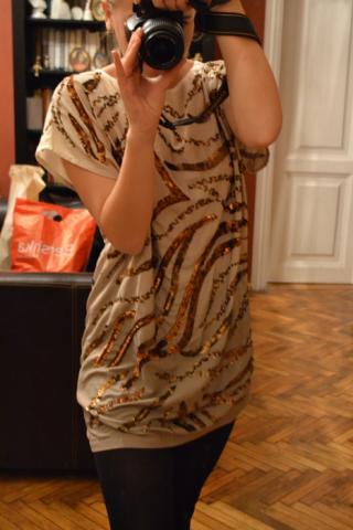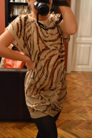 išsiuvinėta dailiais žvyneliais, suknelė tiesaus kirpimo. tiktų ir nėštukėms, galima susijuosti dirželiu