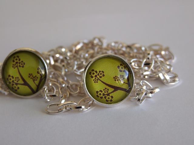 Auskariukai padaryti naudojant Collagen'o techniką. Auskariukų piešinėlis - tai paveikslėlis perkeltas ant fotopopieriaus ir uždengtas permatomu kabošonu. Auskariukų užsegimas sidabrinės spalvos.