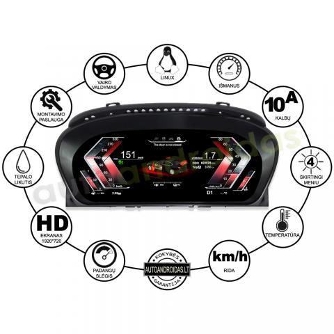 bmw 5 e60 e61 6 e63 e64 2004-10 lcd prietaisų skydelis-spidometras
