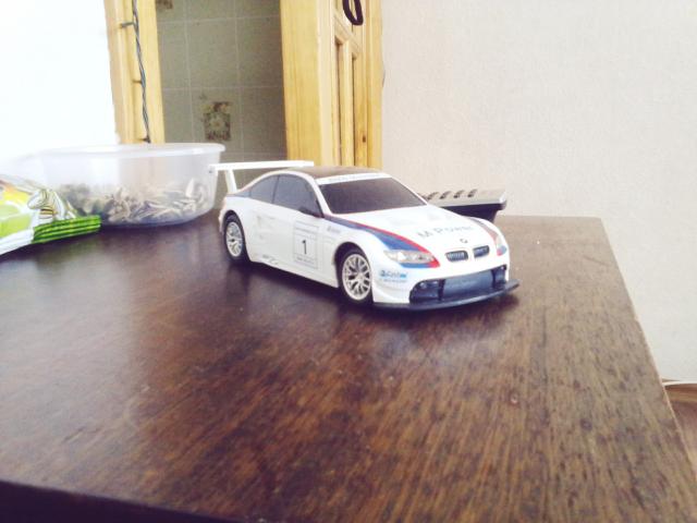 BMW M3 GT2 radijo bangomis valdomas modeliukas , 18x7 , su pulteliu.