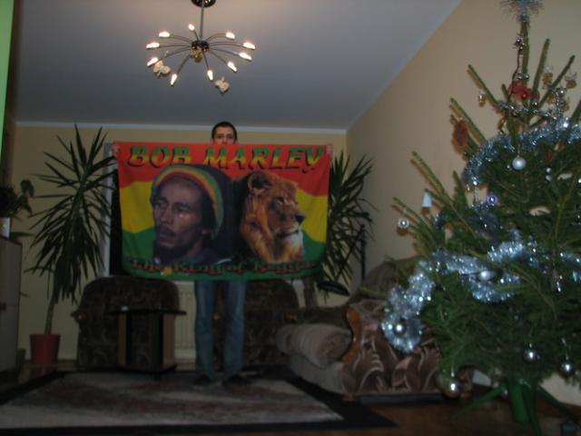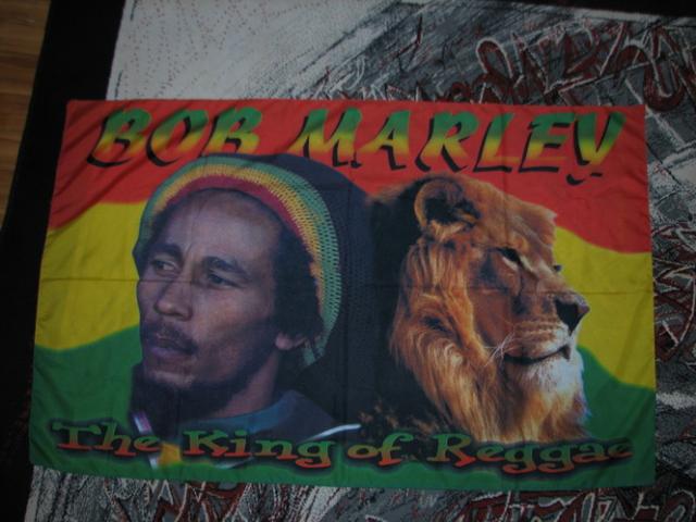 Matmenys mazdaug: 1,5 m x 1,0 m ; Tekstas: BOB MARLEY The King of Reggae