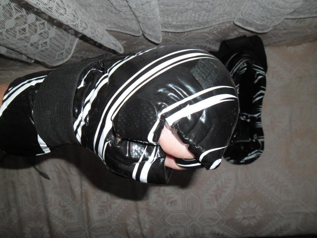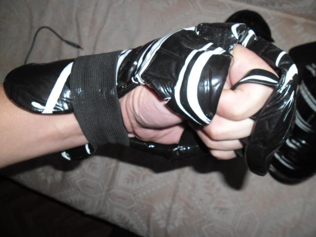 labai patogus, minksti kad nesuteiktu dideliu suzalojimu priesui ir paciam nesusizaloti, mazai naudoti. batu ismiera iki 43 kojos, o rankos tai betkokios nuo vidutinio dydzio iki didziausio nes yra gumos...