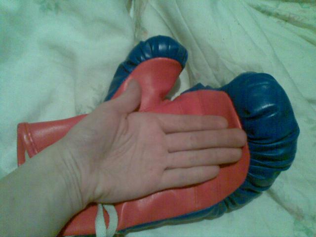 normalaus dydzio, gaila tik viena, be defektu, viduj su paminkstinimais, zodziu tikra bokso pirstine.