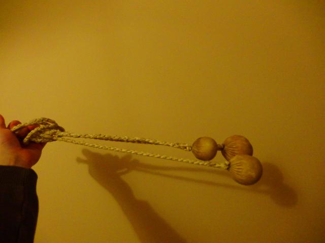 argentinos,urugvajaus vietiniu kauboju ginklas:) tie apvalus yra is jauciu kiausiniu odos o viduje akmenys:) ginklas svaidomas norint sugauti gyvulius