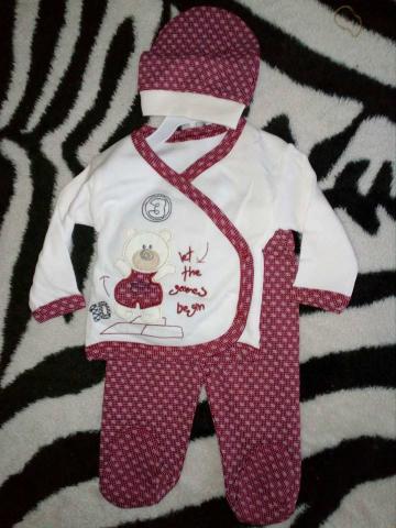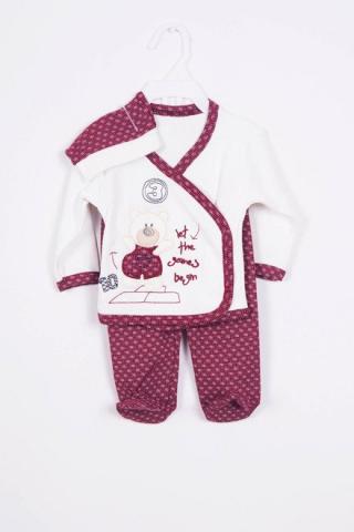 Bordinės spalvos komplektukas su kepuryte.100% medvilnė