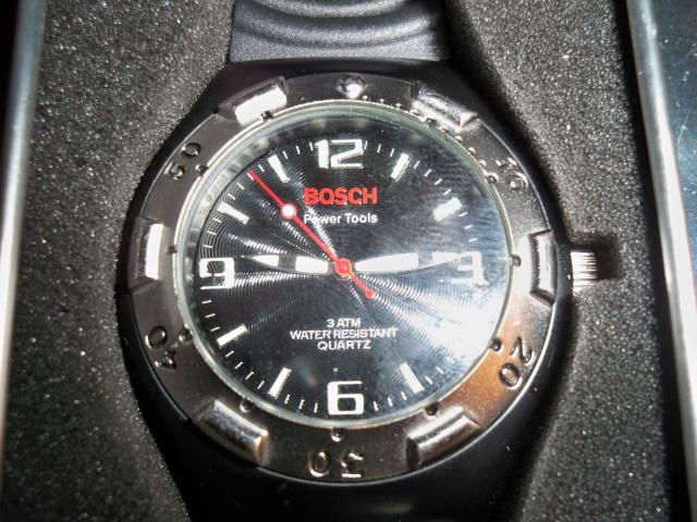 BOSCH rankinis laikrodis. Atsparus vandeniui, dulkems, sutrenkimams. Tamsoje švyti rodykles ir padalos. Atlaiko iki 3 bar slegį po vandeniu. Stiklas grūdintas, atsparus įbrežimams. Dėvėtas, yra papraizytas tik is apacios