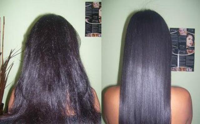 BRAZILISKAS PLAUKU TIESINIMAS KERATINU. Braziliškas plaukų tiesinimas – tai visiškai saugi, nepažeidžianti plauko struktūros grožio procedūra. Šios unikalios priežiūros procedūros pagrindas - keratinas, pagrindinė plaukų \"statybinė medžiaga\". Tokiu unikaliu metodu plaukai prisisotinami ir padengiami plonu keratino sluoksniu. Plaukai akimirksniu susigrąžina blizgesį, pasidaro minkštesni ir „gyvesni“, lengvai šukuojami. Privalumai: 1. Natūralumas. Šios plaukų atstatymo sistemos pagrindas - plaukų sodrin