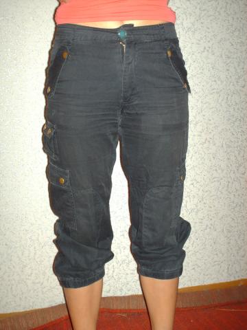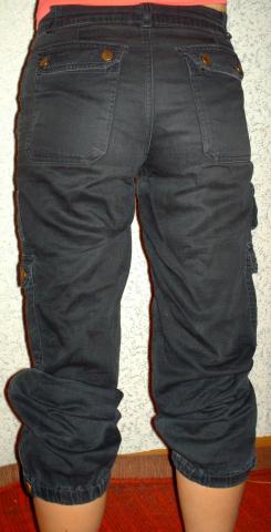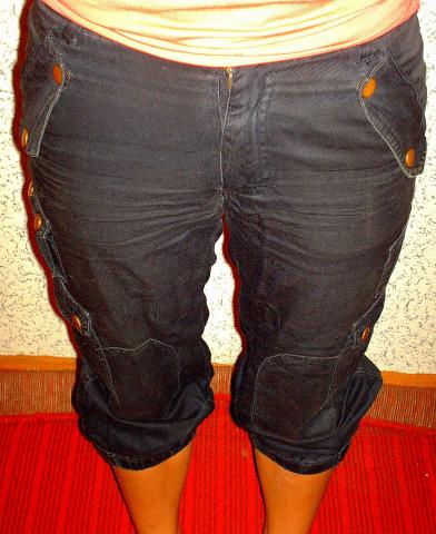 Turi daug kišenių, užtrauktukus galuose. Galima nešioti kaip bridžus arba kaip kelnes ( nedidelio ūgio panelėms) Nėra žemo liemens