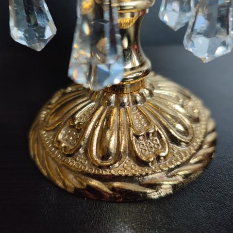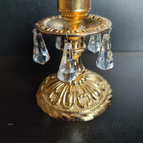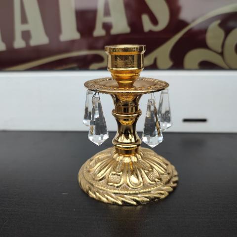 Bronzinė žvakidukė su krištoliukais.