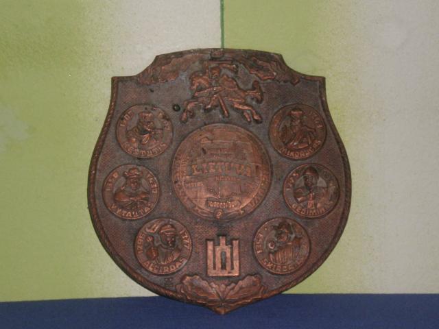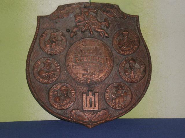Bronzinis lydynys su lietuvos valdovais (mindaugas, gediminas, skirgaila, algirdas, vytautas, kestutis), vytis ir ldk zemelapis
