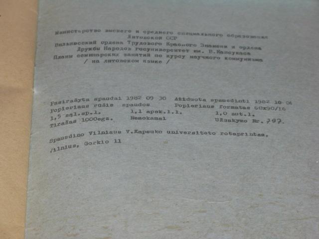 Brosiurele Mokslinio komunizmo kurso seminaru planai 1982m.