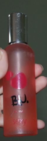 Likę mažiau apie pusę, gal mažiau šiek tiek. Maždaug virš užrašo BU. Saldžiai kvepia.