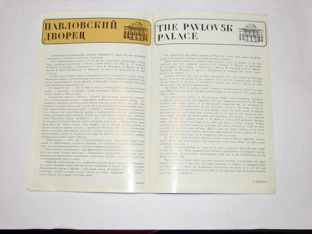 Bukletas - lankstinukas "Pavlovo dvaras", rusų ir anglų kalbomis.