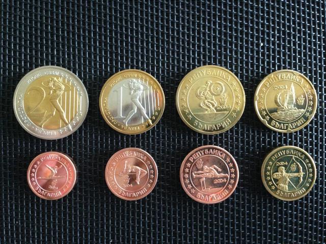 Bulgarijos euro monetų projektas. Bandomieji eurai. 2004m. Skirta olimpiadai.