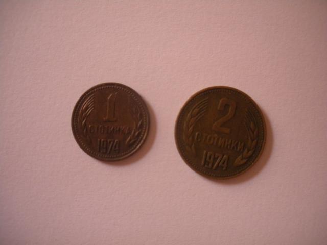 1974 m. bulgariškos 1 ir 2 stotinkos.