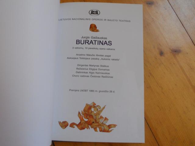 Buratinas, j. gaizauskas, operos 3 veiskmuose aprasymas, a. matucio libretas pagal tolstojaus pasaka auksinis raktelis, lietuvos nacionalis operos ir baleto teatras, 2008