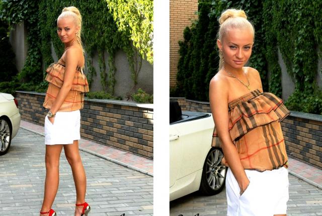 Burberry style labai simpatiskas kombinezonas, virsus - sifononis, sortukai - kostiumine medziagyte. Ties liemeni - guma. medziaga tampri.Dydis S/M, M. Gali tikti ir mazam L. kAINA SU SIUNTIMU!