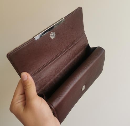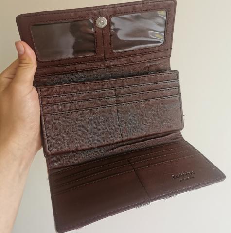 Dėvėta, bet be defektų, puikios būklės, labai talpi, yra skyrius monetos, telpa labai daug korteliu, labai gražus dizainas, patvari medžiaga. Naujesnio modelio