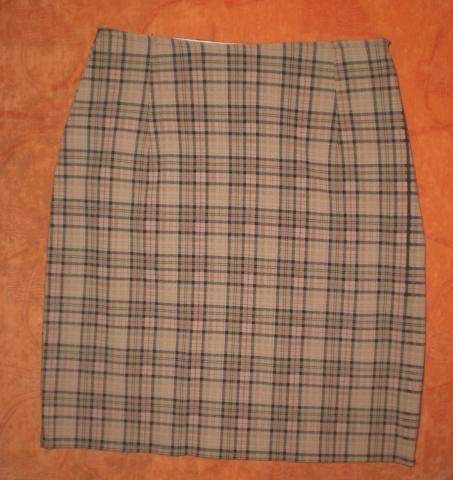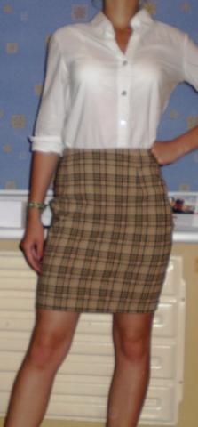 Trumpas siaurėjantis sijonukas aukštintu liemeniu. Elastinis, todėl gražiai apsitempia ant klubų ir atitinka S/M dydžius. Matmenys: ties liemeniu 32,5cm, klubai 43cm, ilgis 47,5cm