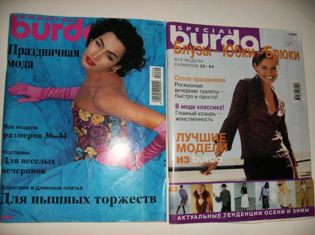 Įvairūs Burdos numeriai, du Special Burda (pirma foto). Yra visos iškarpos, net nebuvo išimtos. Jei ką, klauskit. :)