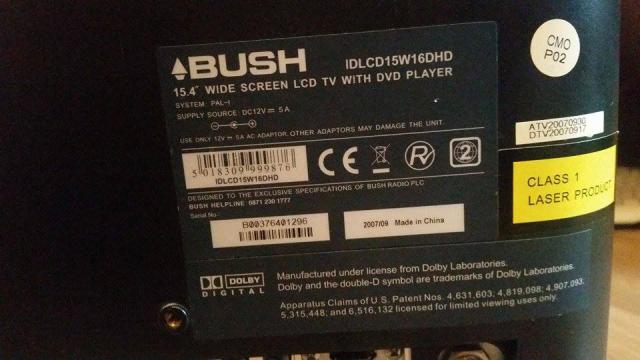 Bush televizorius 15,4 colio, turi HD ready ,hdmi,usb,scart tulpes ,korteliu skaitytuva, sakito dvd kompakta ,viskas veikia