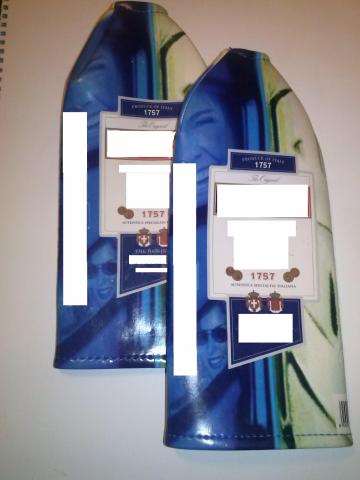 Nenaudoti "marškinėliai" atvėsintam gerai žinomo gėrimaičio buteliui, žemai temperatūrai palaikyti. Yra 2 vnt. po 1,5eur.