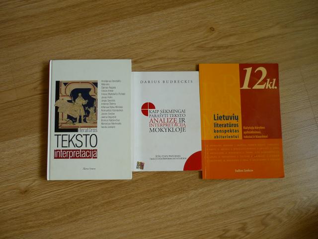 1. "Literatūros teksto interpretacija". Ši knyga tai penkiolikos lietuvių rašytojų kūrybos interpretacijos ir patarimai, kaip savarankiškai interpretuoti bei analizuoti grožinės literatūros tekstą. 2. Darius Budreckis "Kaip sėkmingai parašyti teksto analizę ir interpretaciją mokykloje". Tai šešių etapų programa, tikslūs paaiškinimai ir patarimai. Šis interpretacijos rašymo metodas skiriamas mokiniams, susiduriantiems su teksto analizės ir interpretacijos rašymo problemomis. 3."Lietuvių literatūros konspek