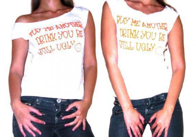 Marškinėliai su originaliu užrašu "buy my another drink, you are still ugly" Mokejau nemazai,firminiai :] Dydis M,bet tinka ir S ;) be defektu ;]
