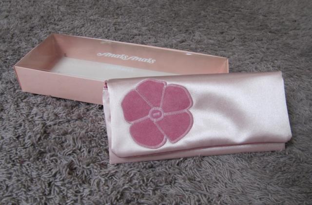 originali Cacharel delninė (pirkta UK). Šviesiai rožinio atlaso su verstos odos imitacijos gėlyte. Viduje yra rankena, todėl galima nešioti ir kaip rankinuką. Dydis 28x13cm. Nauja, su dėžute.