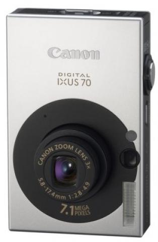 Canon Digital IXUS 70 7,1 mln efektyvių vaizdo elementų 3x optinis priartinimas DIGIC III procesorius "Face Detection" funkcija ISO 1600 2,5" LCD ekranas