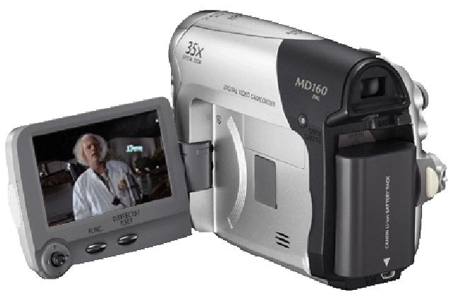 Puikiai veikianti MiniDV vaizdo kamera su visais priedais (dėklas, baterija, pakrovėjas, kompaktas, instrukcija, laidai prijungti prie kompiuterio USB ir FIRE WIRE), 35x optinis priartinimas, 1000x skaitmeninis priartinimas, galima ne tik filmuoti, bet ir fotografuoti, dedasi SD atminties kortelės, yra Quick Start mygtukas, filmavimas naktį ir t.t. :)