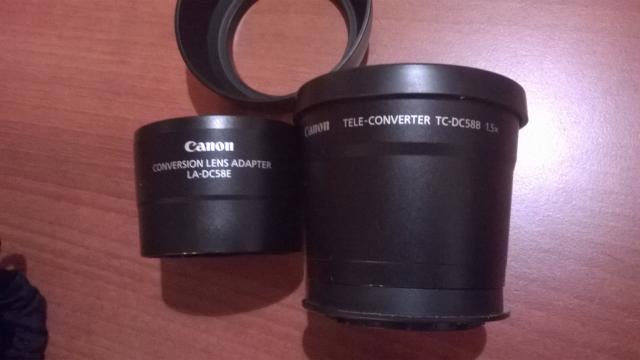 Canon S2-S5 tinkantis telekonverteris, adapteris ir blenda