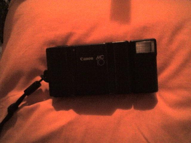 Juodas Canon MC10 fotikas su pridedama blykste