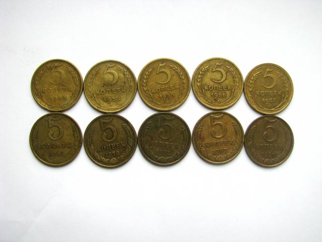 Metai: 1953, 1954, 1955, 1956, 1957, 1961, 1979, 1982, 1987, 1990. Viso 10 monetų. Perleidžiu viską kartu. Stovis matosi nuotraukose