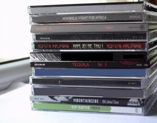nauji, dauguma neišpakuoti CD. Hokshila - Fight For Africa; Ženklas X - Take; K. Jablonskis - Kam, jei ne tau; Tequila - Nr. 1; Mountainside - All about time; Zip Gatvė - Trys; Biplan - Braškės