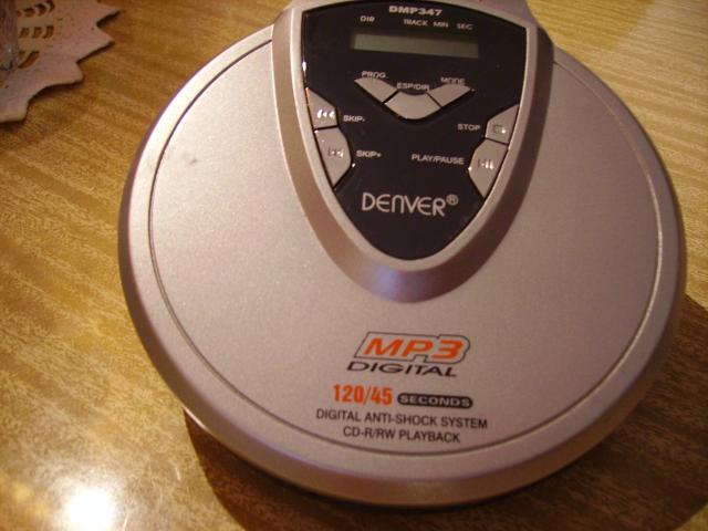 CD mp3 grotuvas DENVER mod.DMP347, puikios būklės su ausinėmis, maitinasi nuo dviejų AA tipo baterijų.