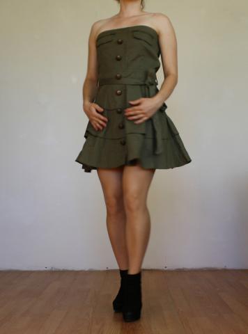 Chaki spalvos suknelė su surišamu kaspinu. : ) Ilgis 69cm.