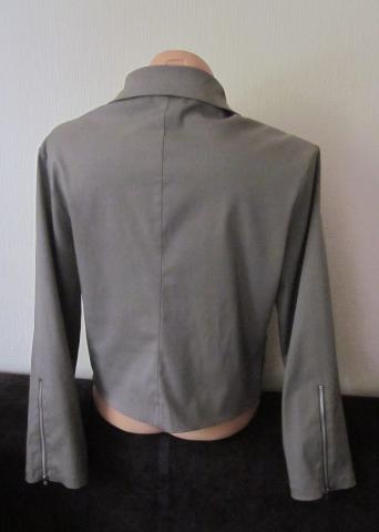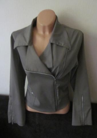 Chaki spalvos švarkelis. Dydį rašo M, bet atitinka L. Lietuvių gamybos! Užtrauktas eina įstrižai. Išmatavimai (ramybės būsenoje): Ilgis nugaroje (be apykaklės) 53 cm, plotis ties pažastimis 53x2 cm, rankovės ilgis (nuo peties linijos) 60 cm.