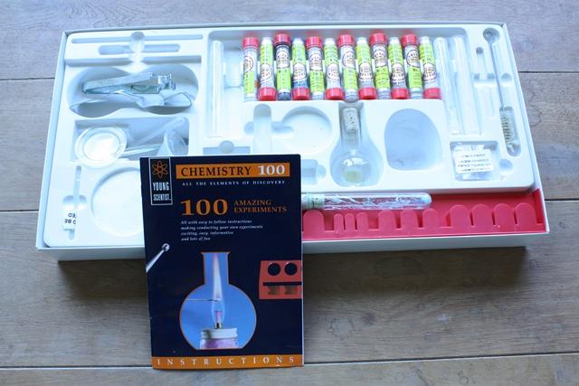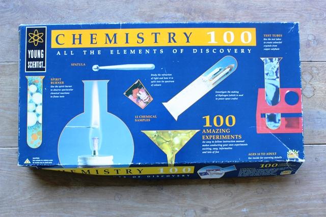 Mokslo populiarinimo serijos Young Scientist chemijos rinkinys. Naudotas kelis kartus prieš gerus dešimt metų ir po to užmirštas. Beveik pilna komplektacija, 12 cheminių medžiagų, mėgintuvėliai ir kt. Yra angliška instrukcija šimtui eksperimentų. Kai kuriems jų tikėtina, kad gali ko nors trūkti (spirito, kaitinimo lentelės, apsauginių priemonių ar pnš.). Šiaip viskas gan geros būklės.