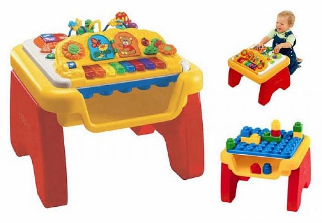 Skirtas vaikams nuo 9 mėnesių; -Yra 3 staliuko naudojimo būdai: 1. Muzikinis pianinas: Pirmas pianinas su dideliais spalvotais klavišais, su daugybe šviesos efektų ir linksmomis melodijomis. Reikia tik perversti puslapius, kad aktyvuotumėte 3 skirtingus žaidimų būdus: -natos; -įrašytos melodijos; -neužbaigtos melodijos, kurias mažylis gali užbaigti savo nuožiūra. Gėlės pavidalo mygtukas suteikia galimybę pasirinkti skirtingus muzikos instrumentus: fortepijonas, smuikas, bandžas. O kad būtų dar