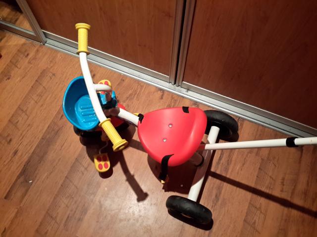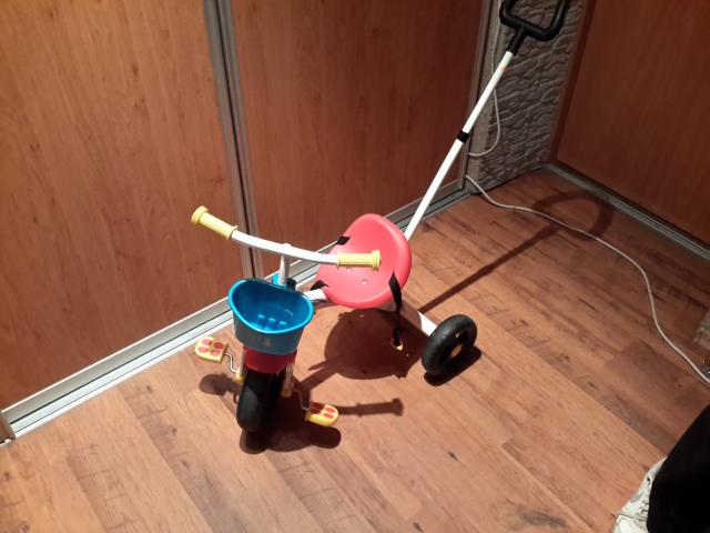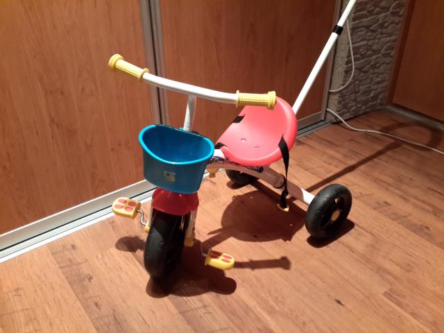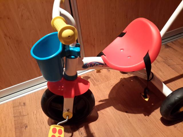 Chicco Triratukas U-Go 2-in-1. Mazai naudotas, labai geros bukles. Savybes: Vaikutis gali sėdėti ant triratuko ir savarankiškai judėti pirmyn. Triratukas turi patogią rankeną, tad suaugusieji gali jį stumti bet kuria kryptimi. Reguliuojamas rankenos aukštis. Vairo užraktas su įjungimo/išjungimo sistema. Metalinis rėmas. Maksimalus vaikučio svoris 20 kg. Rekomenduojama vaikams nuo 18 mėn. iki 5 metų. Daugiau informacijos: https://www.toys24.lt/kitos-prekes/sporto-prekes/paspirtukai-trir