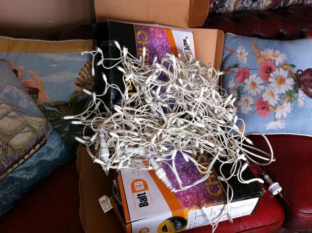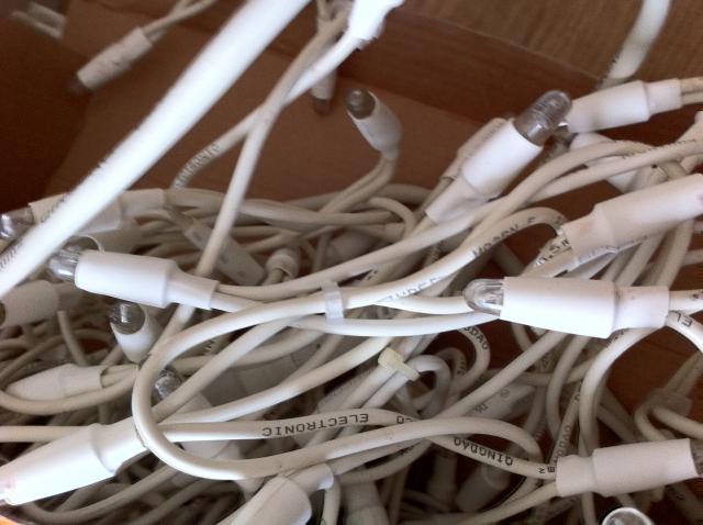 Didele ir ilga, ale toks lietutis. laukui skirta,bet galima ir viduje. Spalva balta. 8 segmentai, dydis: 4 metrai ilgis, 1 metras aukstis, 296 lemputes . kainavo virš 100 lt. (virš 30 eur) naudota lygiai 1 para patalpoje.