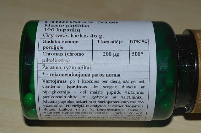 Chromas. Natūrali medžiaga(kapsulės),mažinančios alkį ir saldumynų potraukį. T.k. nemėgstu kasdien gerti tabletes,būna,jog užmirštu,tad parduodu,viso 100 tablečių,liko apie 85-90 vnt,neskaičiavau,nenoriu rankomis liesti.