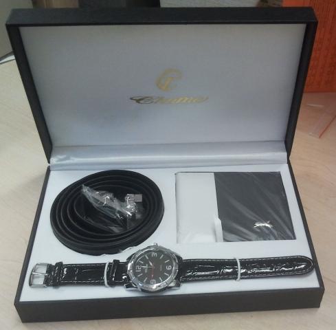 Parduodamas naujas Chtime komplektas, kurį sudaro: 1. Diržas. 2. Vyr. "chtime" laikrodis: Nerūdijančio plieno. Japoniškas mechanizmas. Grūdintas stiklas. Baterija viduje. 3. Piniginė Siunčiu į kitus miestu, registruotu, pirmenybiu būdu.